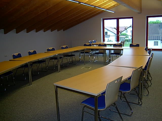 Im Obergeschoss wird der Raum über der Fahrzeughalle gemeinsam vom Gemeinderat als Sitzungsraum und von der Feuerwehr als Schulungsraum genutzt.